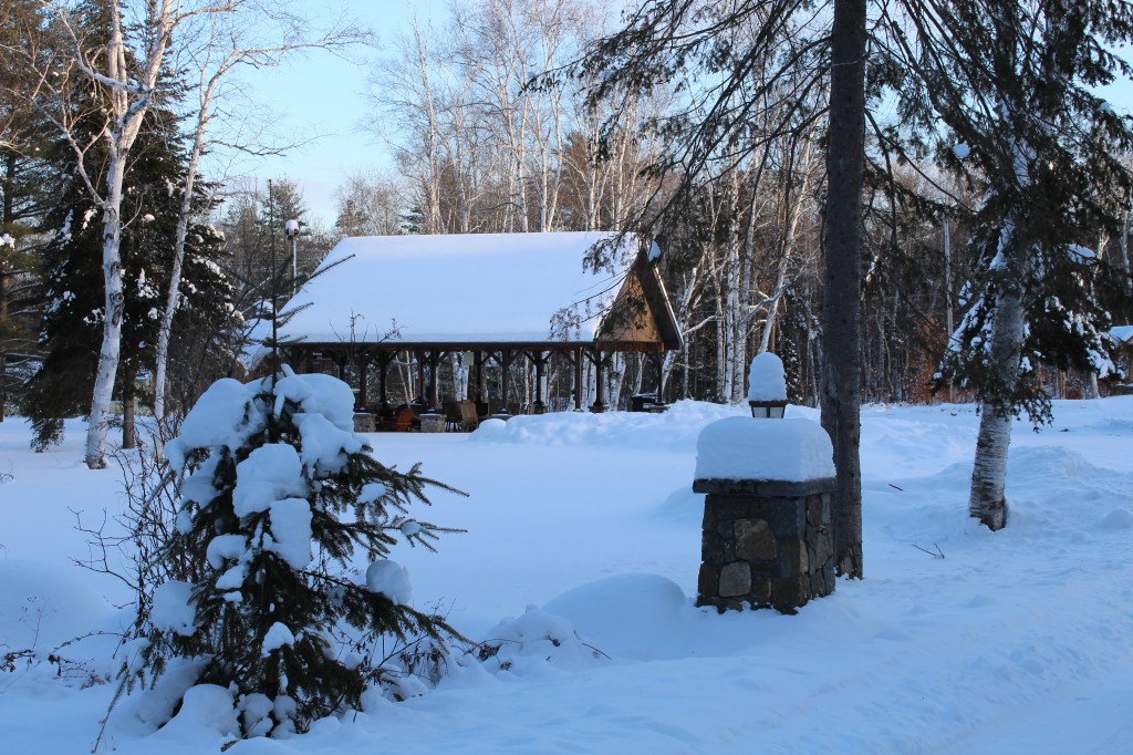 Outdoor covered pavilion with ample seating around a stone fireplace is the perfect spot to enjoy after a day of activity and listen to your favorite music on the Bluetooth speakers. Grill your favorite meats or veggies on the propane grill and make use of the outdoor summertime kitchen. The gazebo with a wood burning stove is a great place to cuddle up on a cold night.