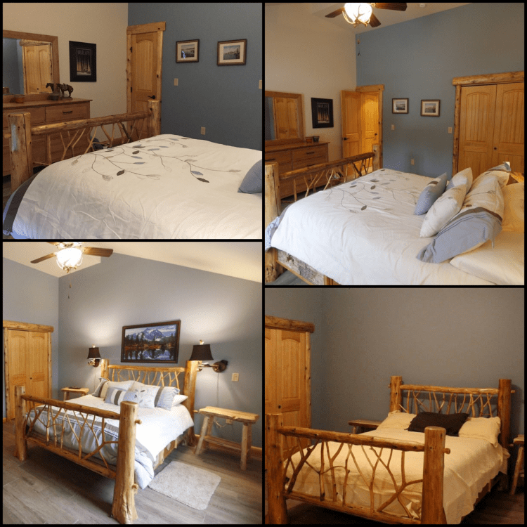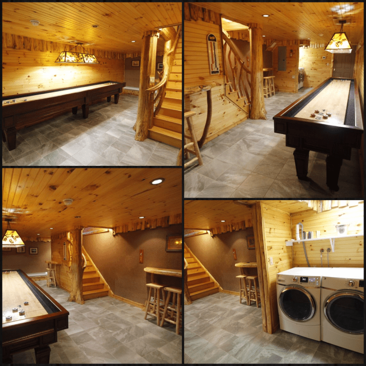 The Chalet has 3 bedrooms on the main floor all with private full bathrooms, 2 Queen and 1 Full locally handcrafted Adirondack style log beds frames. Upstairs is a private Loft space with a Queen, a Twin and a Twin Bunk bed with a private full bathroom with two sinks. The Kitchen is equipped with everything you need, just bring your own food and spices. Enjoy a meal family style at our handcrafted log dining table with enough seating for 8 and additional bar top seating. Relax in the living room playing your favorite board games or enjoying your favorite Netflix shows on the curved 55inch flat screen TV. Challenge your friend to a shuffleboard match at our full size table in the basement game room. And if you want to get outside and have a truly Adirondack experience, the pavilion is all yours to grill or gather around the stone fireplace or cuddle up in the enclosed gazebo by the wood stove. We want you to have fun and make memories!